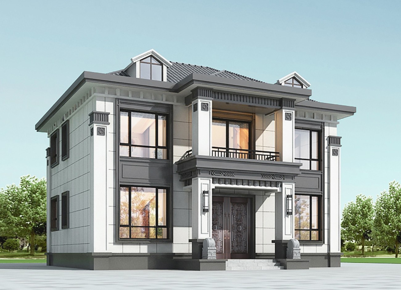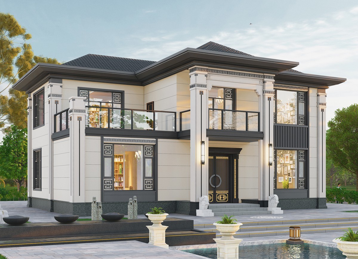 恩施005 两层新中式(11.36x11.76米)-【易设计】